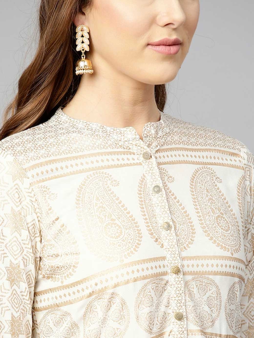 Green and teal blue floral printed anarkali kurta, has a round neck, three-quarter sleeves, and flared hem This product does not come with a mask. The mask on the model is only for styling purpose.